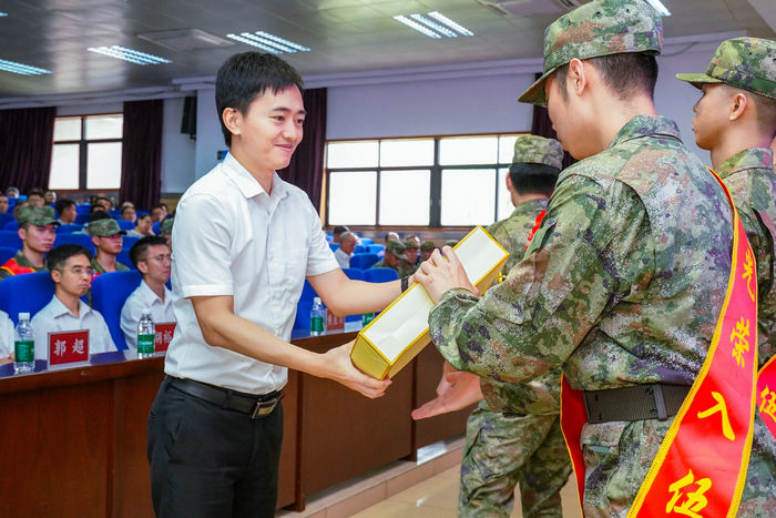 仪式现场,工作人员宣读了2025年下半年陈村镇入伍新兵名单,当一个个年轻的名字被念出时,台下的家属们眼中满是骄傲与期许。随后,新兵家属们亲手为孩子佩戴上象征荣誉的大红花,红花映着青春面庞,成为现场最动人的色彩;各村居书记则为新兵们送上精心准备的鲜花,传递着家乡对子弟兵的牵挂;镇领导班子成员依次为新兵颁发入伍纪念品,每一份礼物都承载着陈村镇对新兵们的嘱托与厚望,希望他们在军营中能牢记家乡期盼,成长为栋梁之材。