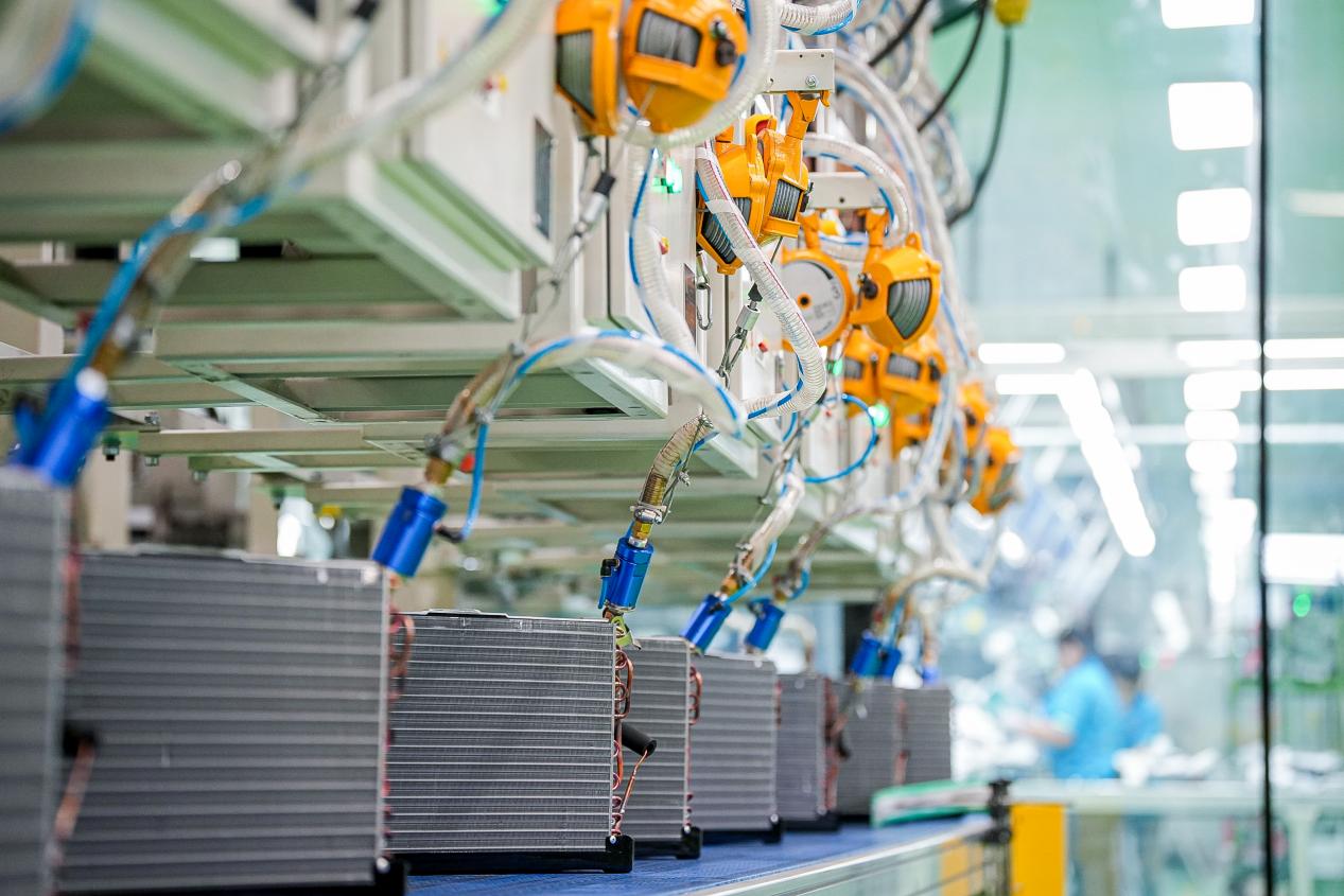 美的空调泰国工厂,坐落于泰国东部经济走廊,规模相当于45个标准足球场,2025年产能已突破500万套空调。仅这一座工厂,产能就超过多数中等国家全年空调需求。品质智能体让质检精准无误、智能排产科学合理,生产节拍精准到秒,平均每6秒就有一台空调完成组装。