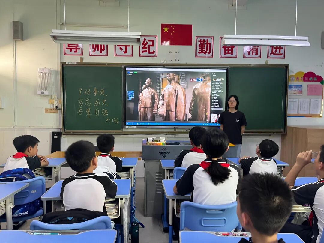 华东小学各班级通过历史讲解、影像资料等形式再现东北人民的抗争历程,以沉浸式教育筑牢学生爱国根基,在回望历史中懂得和平珍贵。