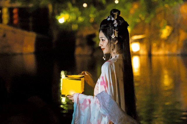 在夜幕降临之时点亮一盏盏河灯
