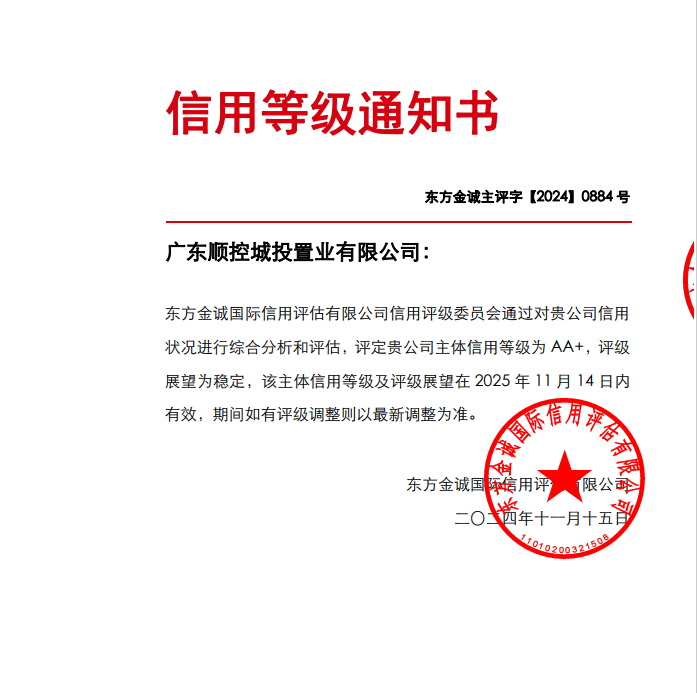 顺控集团持续提升企业资质和运营质量,集团及下属顺控发展公司均获AAA企业主体信用等级,下属顺控城投公司、科创公司获评AA+企业主体信用等级,企业经营质效、融资能力、资本投资运作水平持续提升。下属顺控发展公司获国务院国资委“双百企业”专项评估最高等级“标杆”评价,旗下高新技术企业增至5家,并拥有一家国家级“绿色工厂”。下属顺控产投公司持续推进农业和食品加工产业链上下游拓展,提升产业链协同发展水平。整体资产质量和市场化竞争力持续提升。