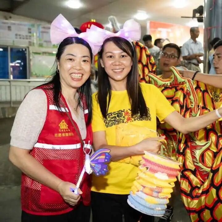 当晚,大福基居委会大院早早便洋溢着节日的喜庆,居民们扶老携幼,手持各式各样的灯笼,提前来到中秋主题打卡点拍照留念,脸上写满了期待与欢笑。