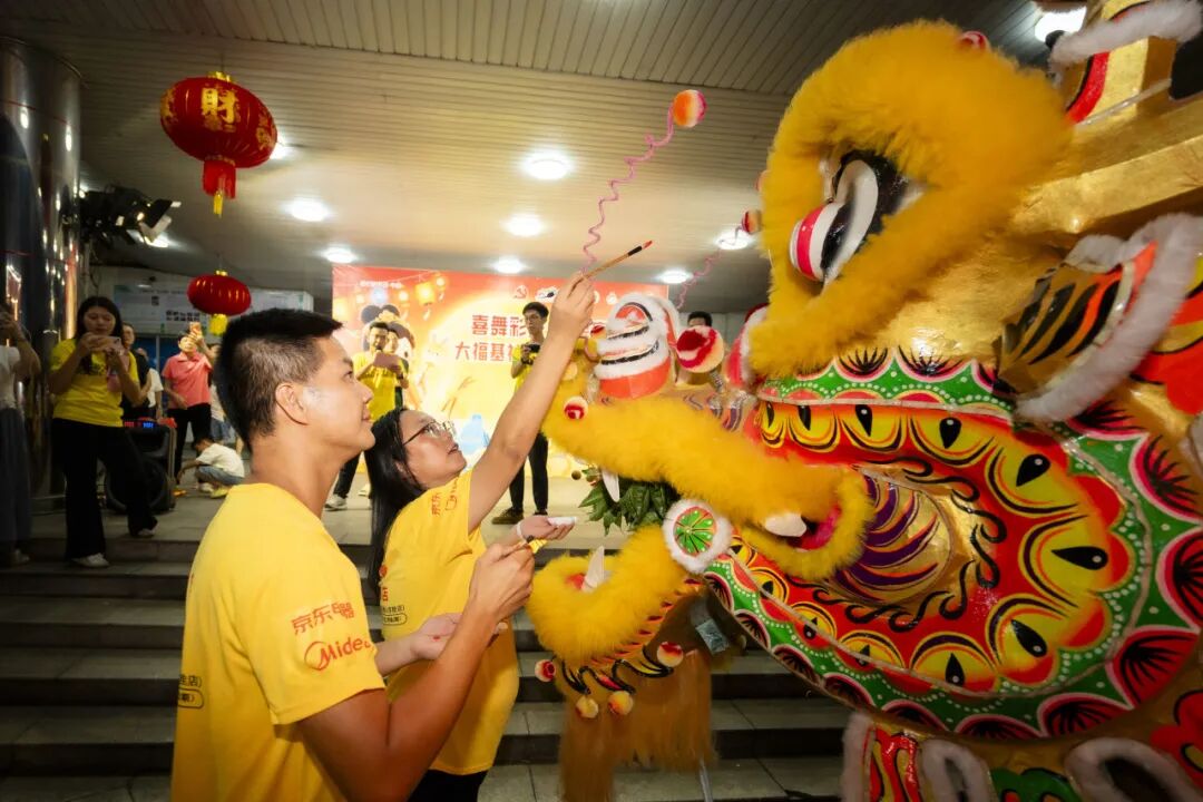 直联团队组长孙玮男与大福基社区党委书记林剑斌共同为百米夜光长龙点睛。一点龙睛,灵气骤生,象征着祥瑞与活力的长龙正式“苏醒”。
