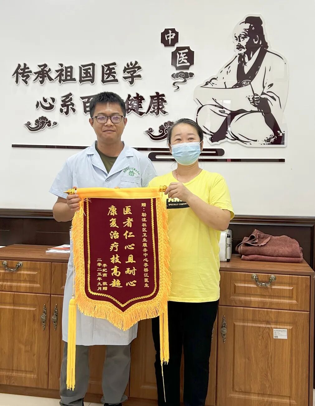 这是李医生近期收到的第二面致谢锦旗。不久前,护工李女士也为感谢他送来锦旗。两位患者年龄不同、病症不一,却都对李医生赞不绝口:“他技术好,态度更是没得说。”
