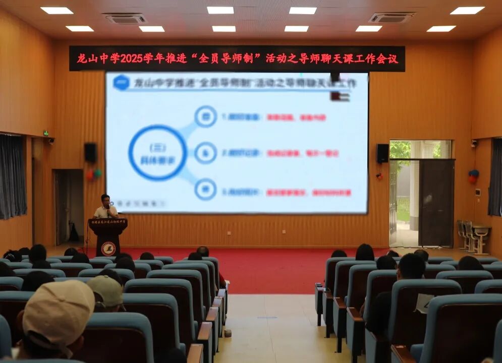 为确保“全员导师制”有效落地,龙山中学制定活动方案,并通过专项会议进行动员部署,明确工作目标与实施细则,强调全体教师共同参与,形成育人合力。