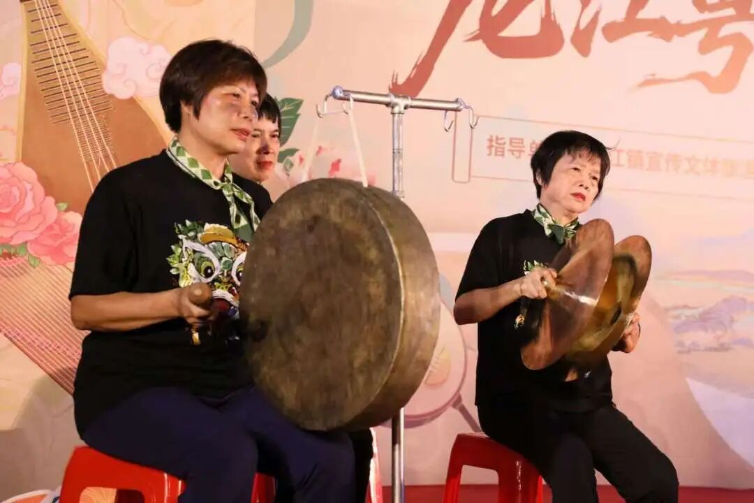 自2022年3月起,龙江镇戏曲协会开办锣鼓班,特邀欧阳荫荣老师执教。目前已吸引镇内三十余名学员参与学习。在“龙腾粤韵——龙江粤剧文化晚会”上,学员们自信登台,一展两年所学,赢得现场观众阵阵掌声与喝彩。