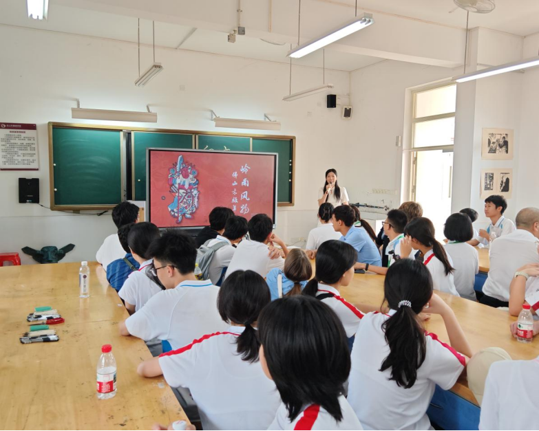 五楼版画室内,一场精彩的佛山木版年画体验课热闹开启。介绍环节中,师生踊跃参与知识问答,现场气氛热烈高涨。