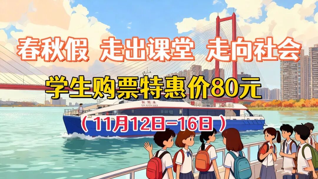 优惠内容:18岁以下学生及在职教师单程船票80元,往返套票150元