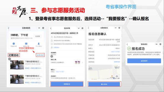 (一)粤省事小程序志愿服务活动报名操作界面;
