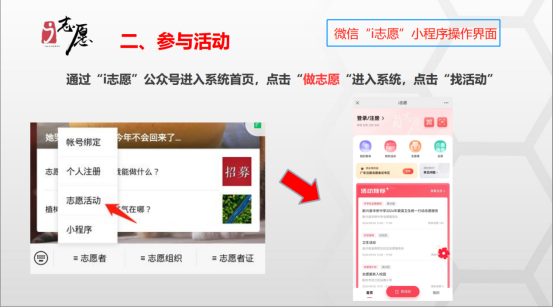 (三)微信“i志愿”公众号志愿服务活动报名操作界面;