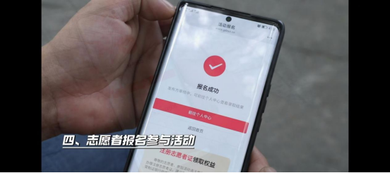 三、查询、报名志愿活动:志愿者可通过“i志愿”搜索具体活动,或者点击志愿服务队发布的活动链接报名参加群防群治志愿服务。收到“i志愿”系统发出的录用提醒或者手机短信录用通知,视为报名成功。详见下图。