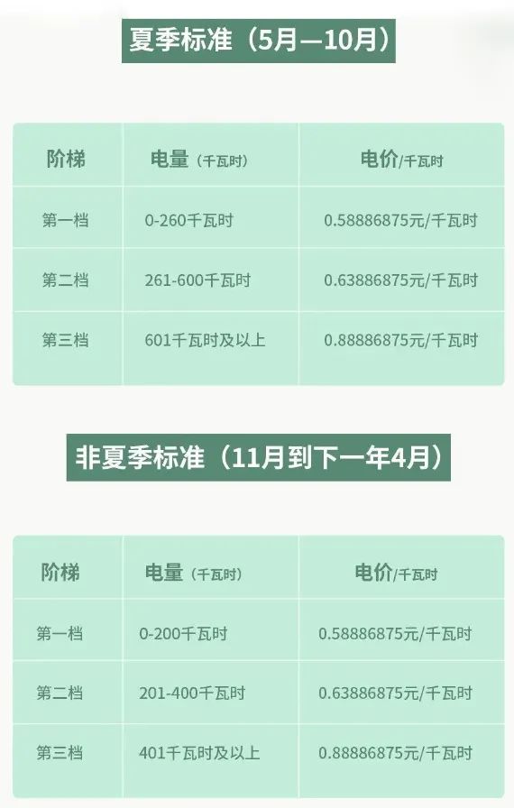居民阶梯电价进入“非夏季模式”