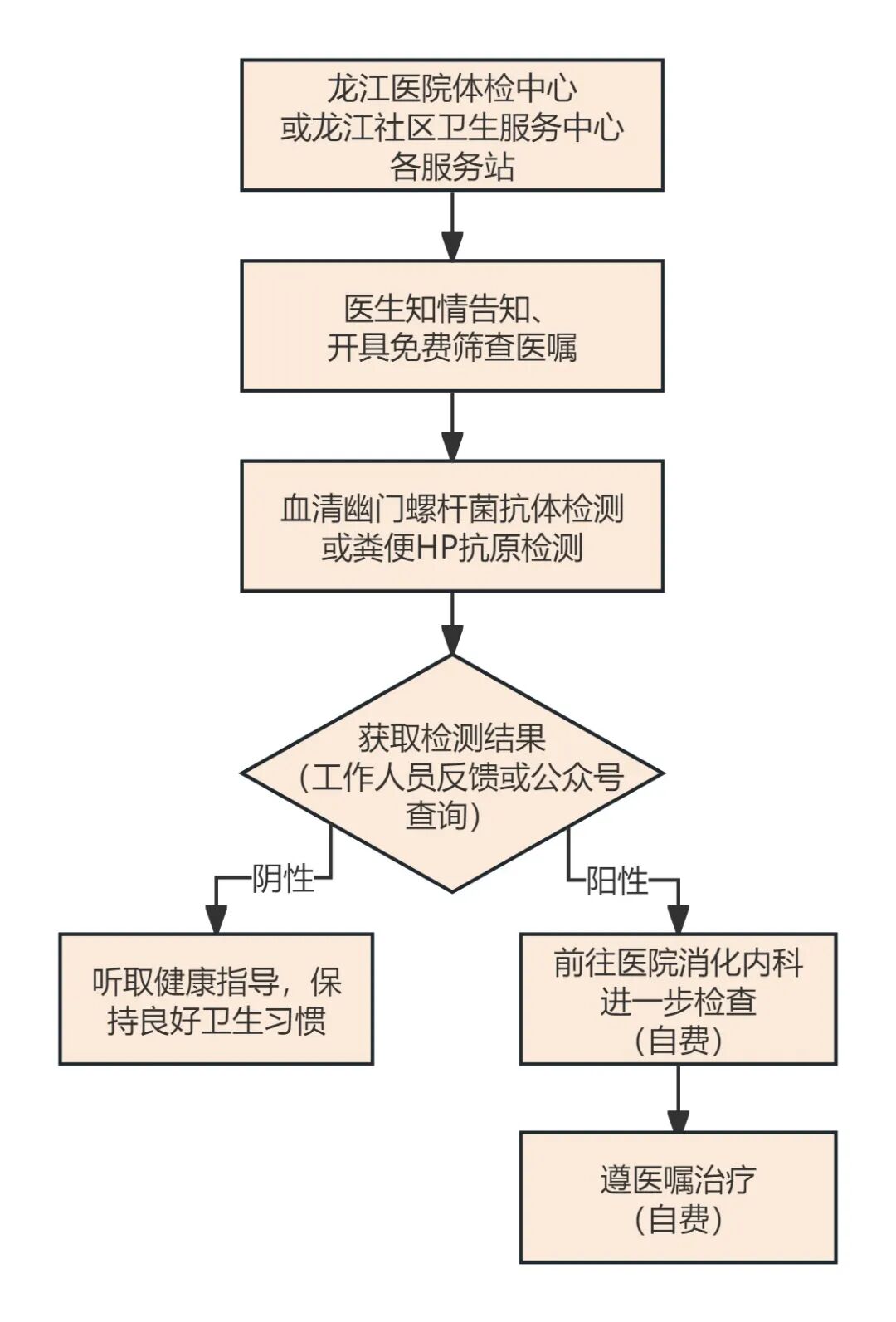 四、如初步筛查结果为阳性,您可前往龙江医院消化内科进行后续诊疗。温馨提醒,本次免费活动仅包含初步筛查,后续的检查(如碳13呼气试验、胃镜检查等)及药物治疗均需自费,敬请知悉。