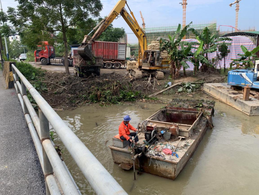 均安镇采用“清淤疏浚+池塘尾水治理”的模式,通过采用机械清淤方式对河涌进行清淤以及清理两岸杂树,清淤方量约1万立方米,河涌水质得到有效改善的同时,增大河涌容水量,有效提升河涌过流功能。