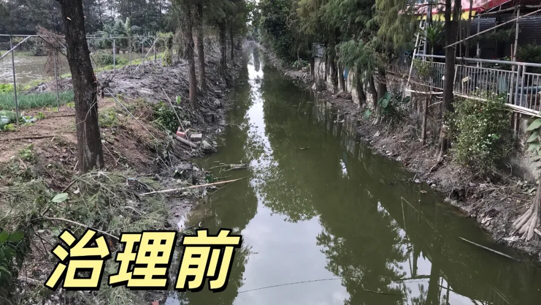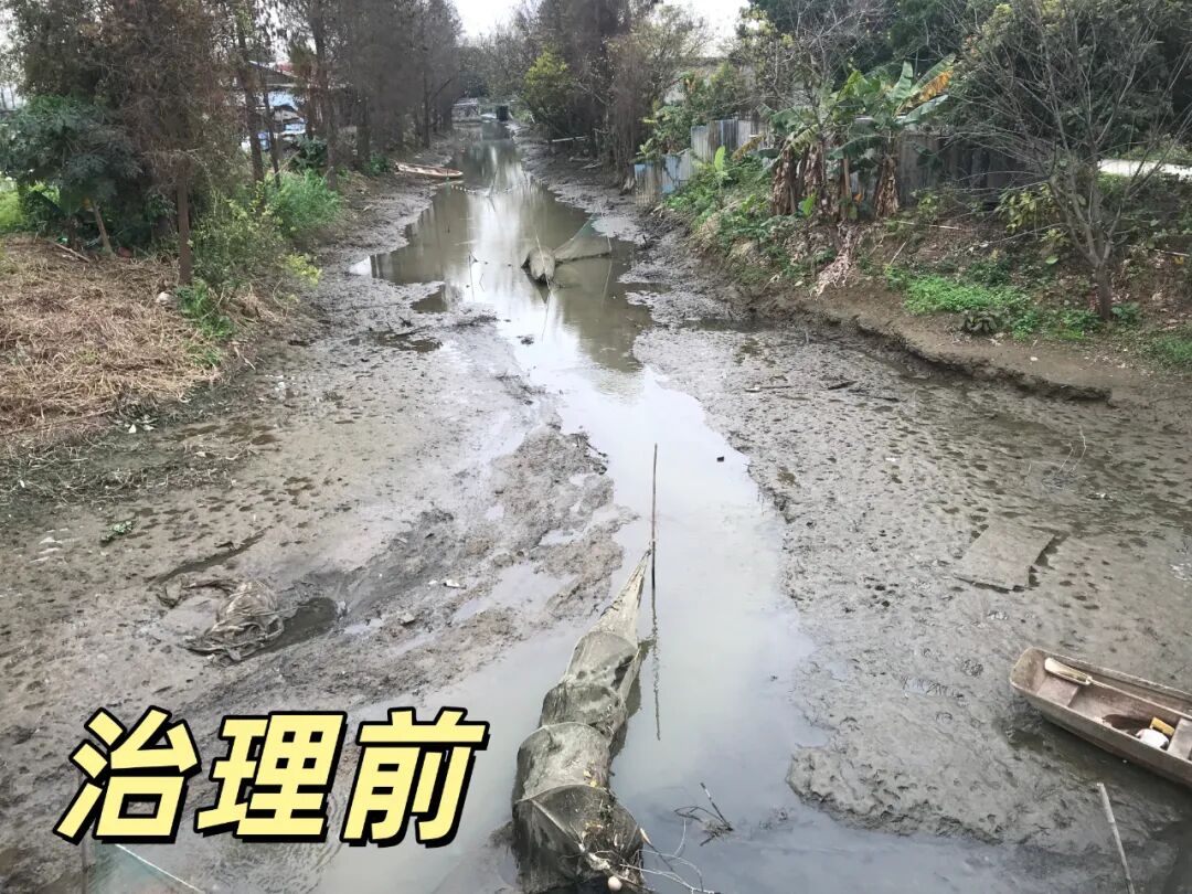 太平村三拱窦涌两岸以农耕地和鱼塘养殖场为主,此前鱼塘尾水未经处理直排入涌内,河涌淤积比较严重、水体流动性差,导致河涌黑臭。