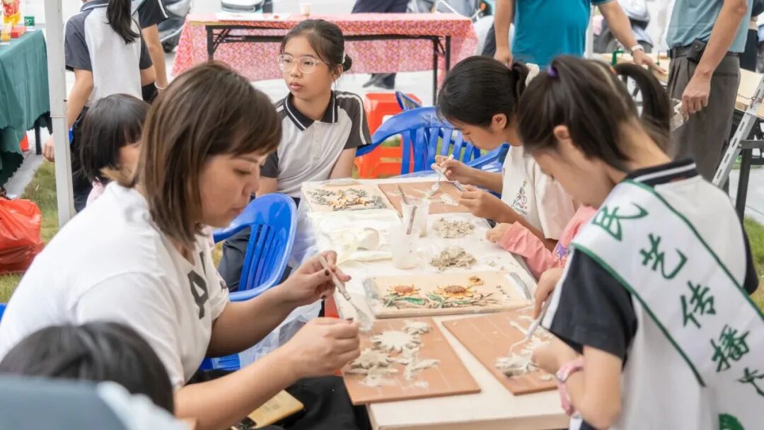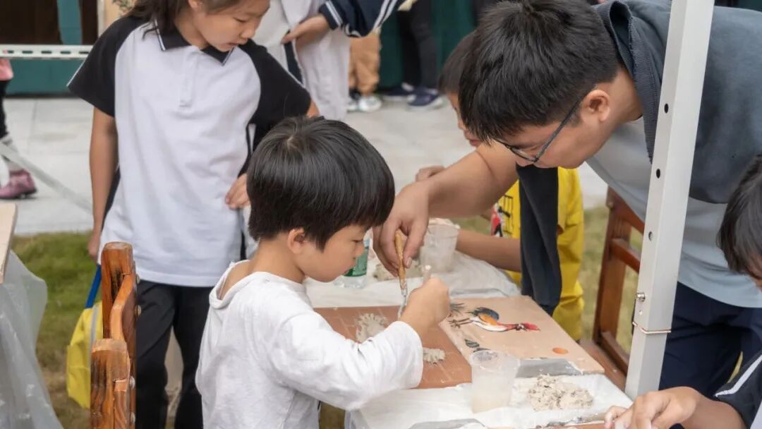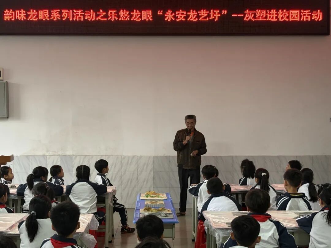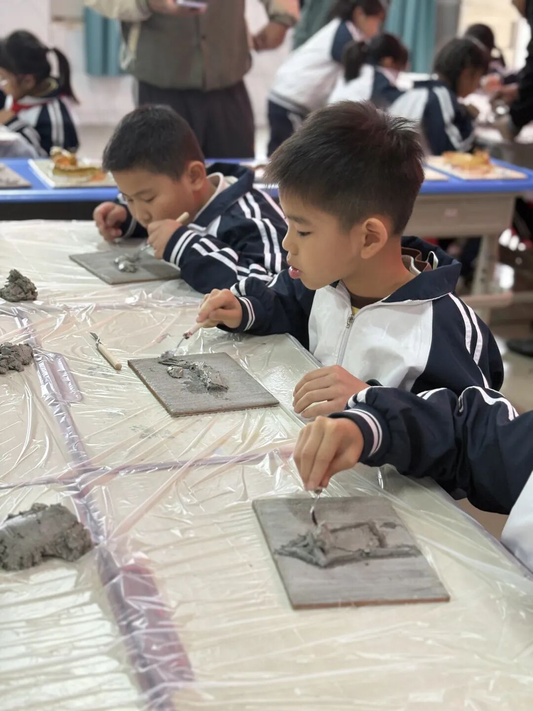 孩子们提前在校内完成一件“龙行”灰塑作品