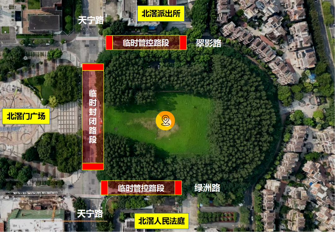 11月28日、11月29日14:00—23:00时,对绿洲路部分路段(北滘行政服务中心停车场往天宁路方向)、翠影路(北滘派出所至北滘综合执法队路段)实施管制措施,禁止社会车辆和行人进入。