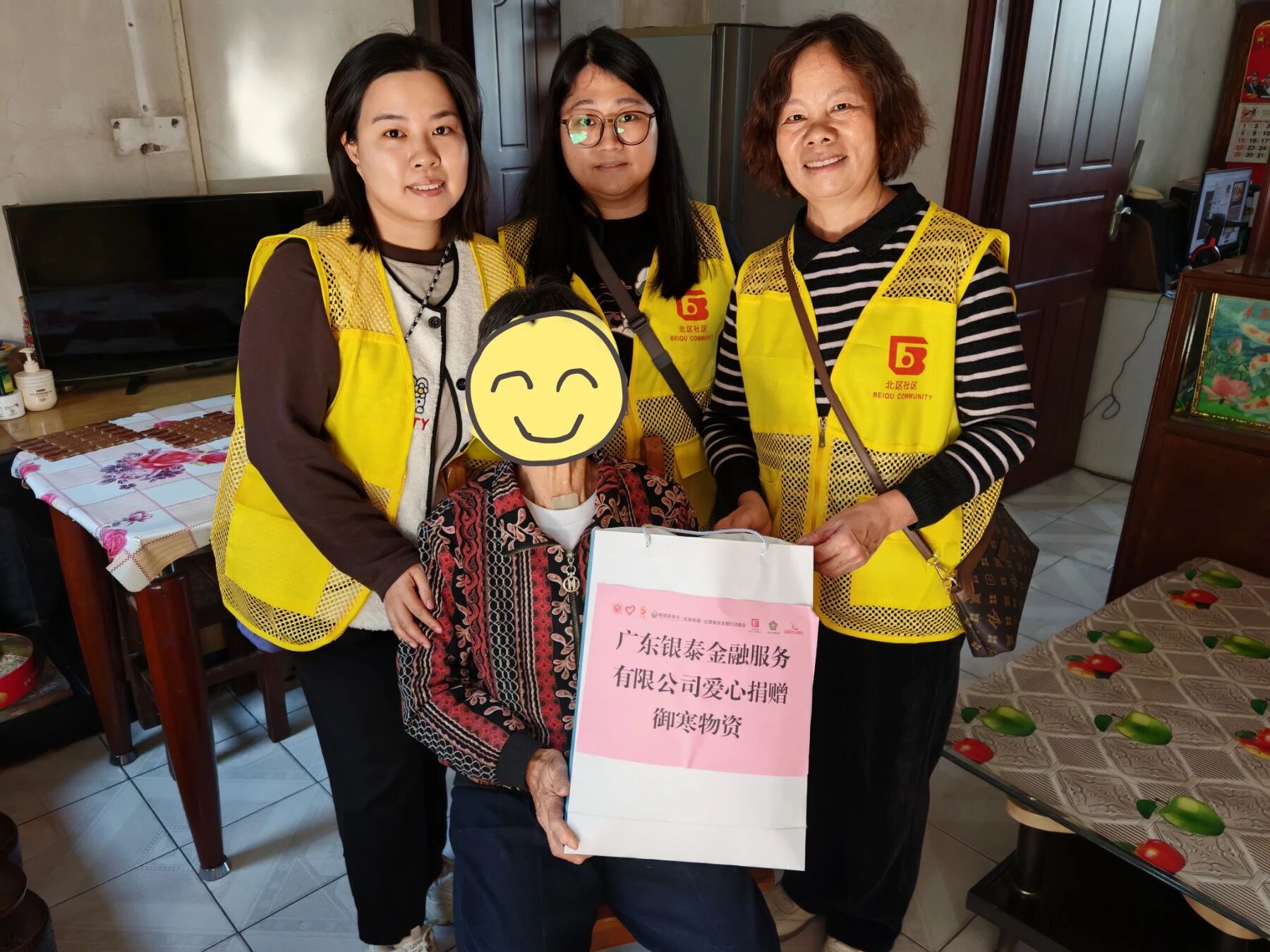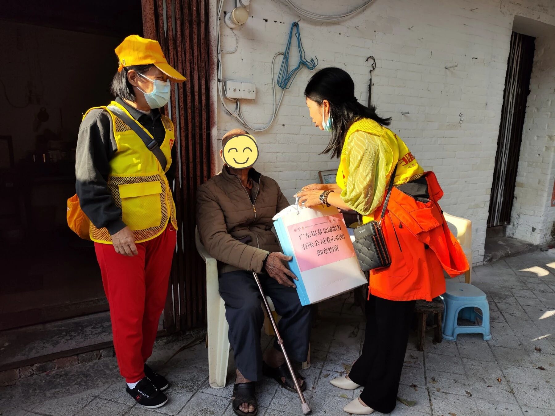 北区社区的温暖不止于此。11月26日,广东银泰金融服务有限公司向北区30陪伴志愿队捐赠一批御寒物资,用于走访慰问辖区困难长者。当日下午,大良街道社会工作服务站北片双百社工与北区30陪伴志愿队联合广东银泰金融服务有限公司,一起为社区困难长者送上珊瑚绒被等御寒物资,给他们送去温暖。