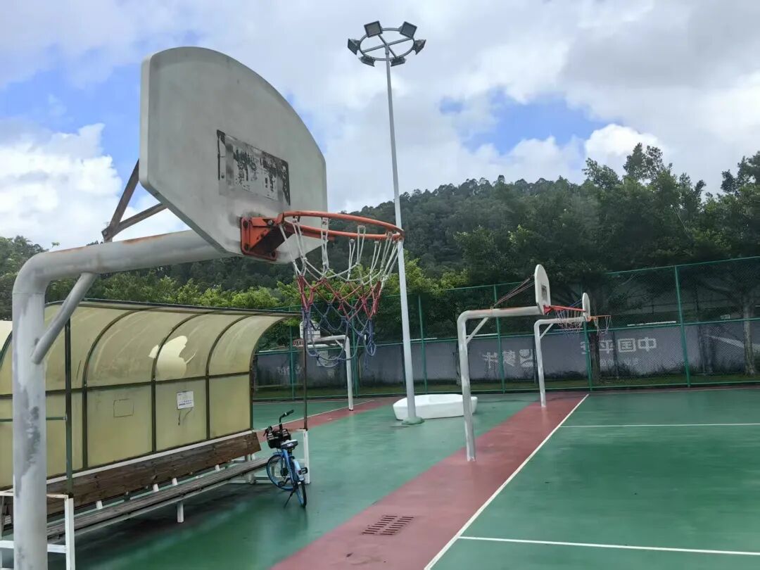 改造前:篮球场篮网残缺锈蚀、乒乓球、羽毛球网松弛断裂,场地地面涂层磨损剥落,防滑性能大打折扣;防护围网与休憩座椅、遮阳棚等配套设施陈旧破损,既影响运动体验,又暗藏安全隐患。