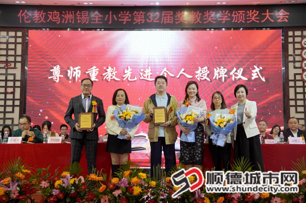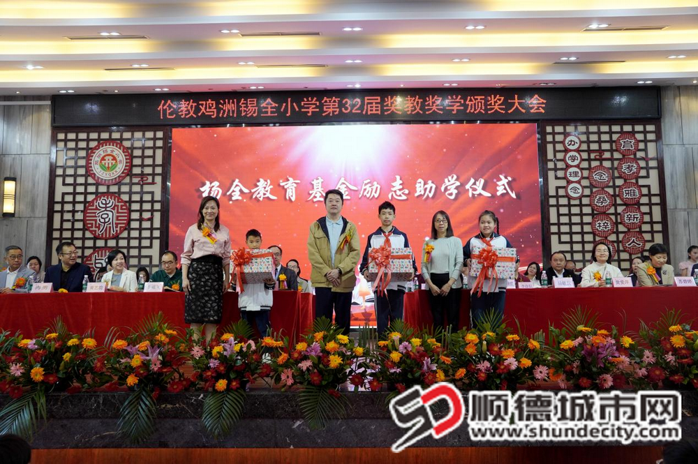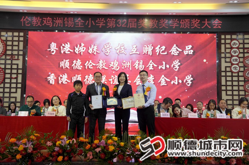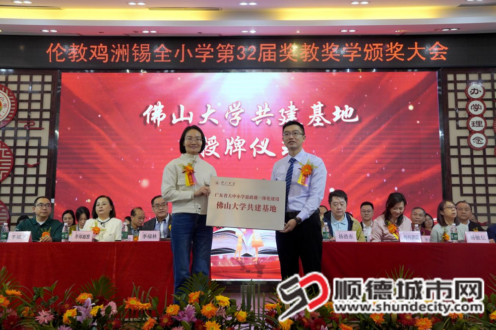 典礼期间,系列特色仪式相继举行:伦教街道关工委主任梁浩尧为退休教师马少环颁发绶带,表彰其数十年育人奉献;杨浩东伉俪等为受助学生送上助学物资;黄艺韵代表街道授予李福林、杨全“伦教街道尊师重教先进个人”称号;佛山大学马克思主义学院向鸡洲锡全小学授予“广东省大中小学思政课一体化建设共建基地”牌匾,为思政育人注入学术支撑;鸡洲锡全小学与香港李金小学两校校长互换学生精心制作的特色纪念品,见证粤港教育情谊。