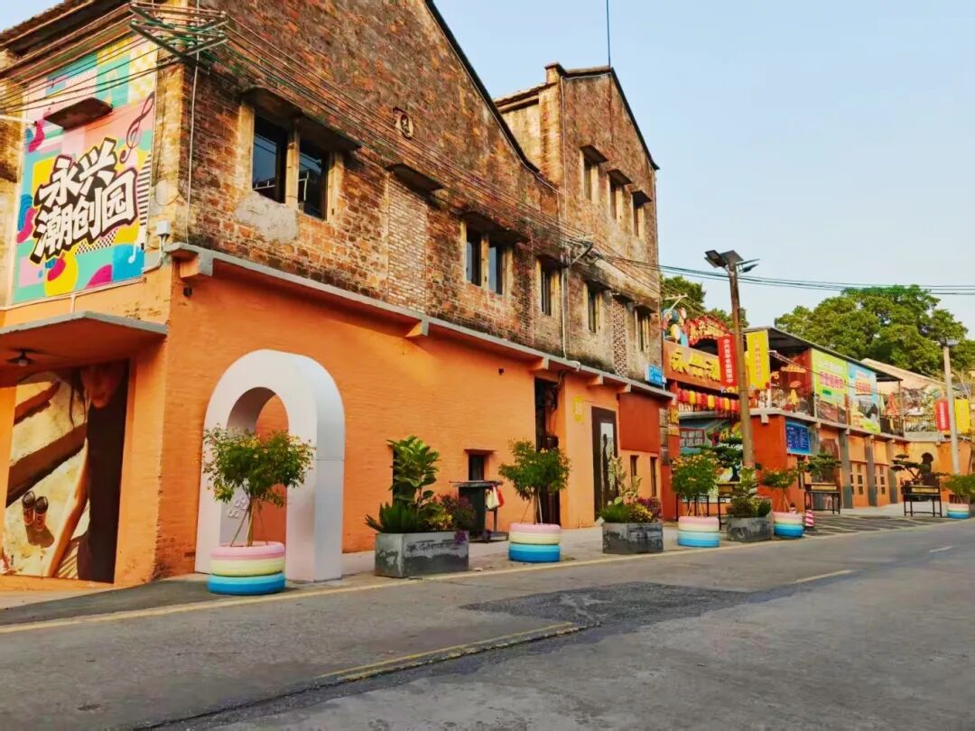 永兴潮创园所在地曾是勒流的老五金电器厂,由勒流本土90后海归廖业杨主导改造。如今永兴潮创园融合了电竞民宿、艺术空间、咖啡馆及跨境电商配套等多元业态,是融合历史记忆与潮流文化的青年创意聚集地。