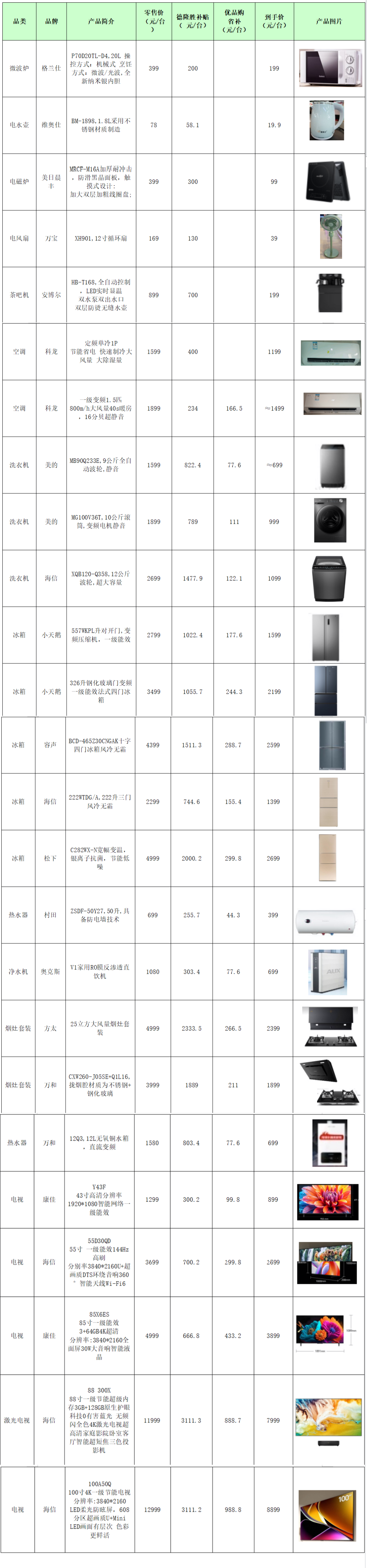 > 部分补贴商品举例 <