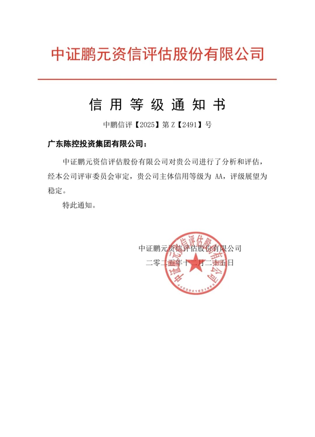 未来,陈控集团将以此次评级为契机,持续深化改革创新,打造镇属公有企业高质量发展标杆,为陈村镇经济发展贡献更大力量。