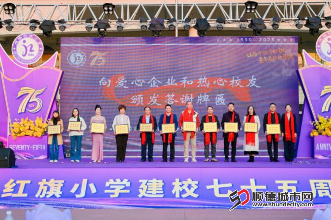 近日,顺德区容桂红旗小学建校75周年庆典温情启幕——校园里,五湖四海的校友踏归程、历任教职工叙往昔、各级领导送期许,在校师生与家长代表出席盛会,三代人在此共赴一场“‘旗’迹传承映童心 七五赓续新华章”的时光之旅。
