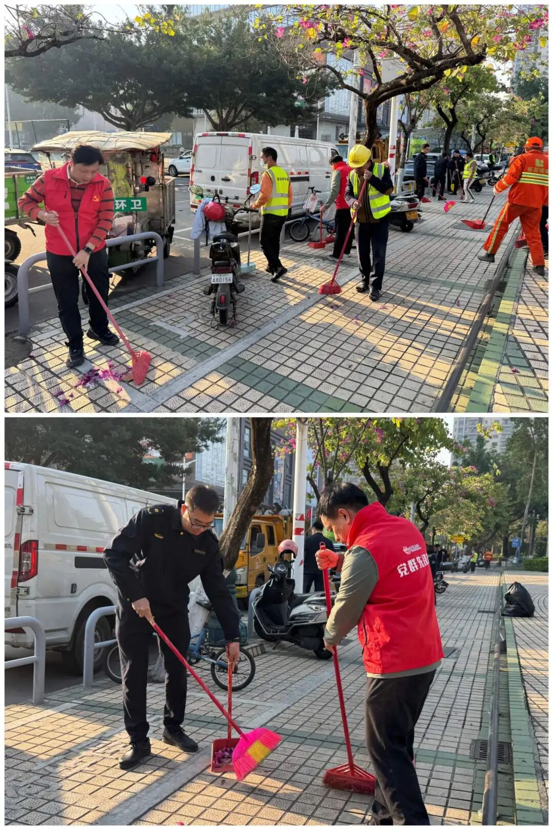 12月30日上午,新华西村开展了冬春季爱国卫生运动,重点消灭越冬蚊。党员干部带头,志愿者、环卫工人及村民积极响应,集中整治村委及大林村小组周边区域。大家分工协作,全面清理公共活动区、绿化带内的落叶垃圾,清除闲置地杂物,清扫卫生死角。通过整治,环境显著改善,蚊蝇滋生地有效减少。