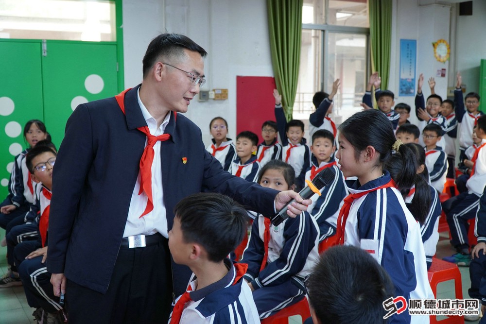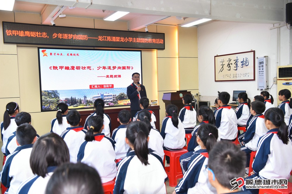 教学楼内,“铁甲雄鹰砺壮志,少年逐梦向国防”国防教育主题队课同样引人入胜。龙江镇宣教办张和平主任从校园内的这架歼-6战机讲起,娓娓道来中国空军从过去“追赶”到今日“领航”的蜕变历程,并给队员们分享了龙江好儿郎梁嘉锦从笔墨“亮剑”到九三阅兵“亮剑”的励志故事,引导少先队员们珍爱生命中的“星光”,逐梦远航。