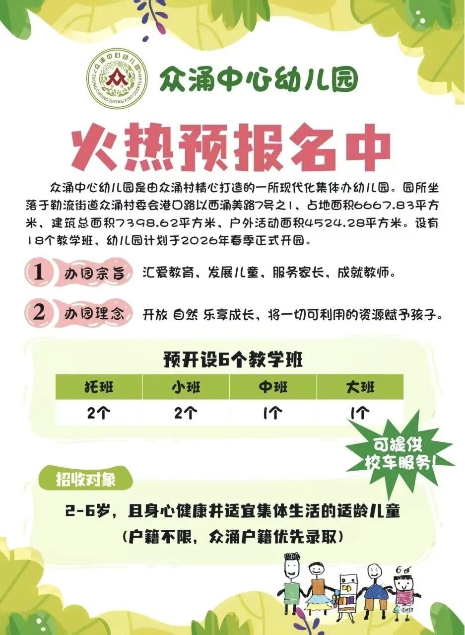 众涌中心幼儿园预报名通知