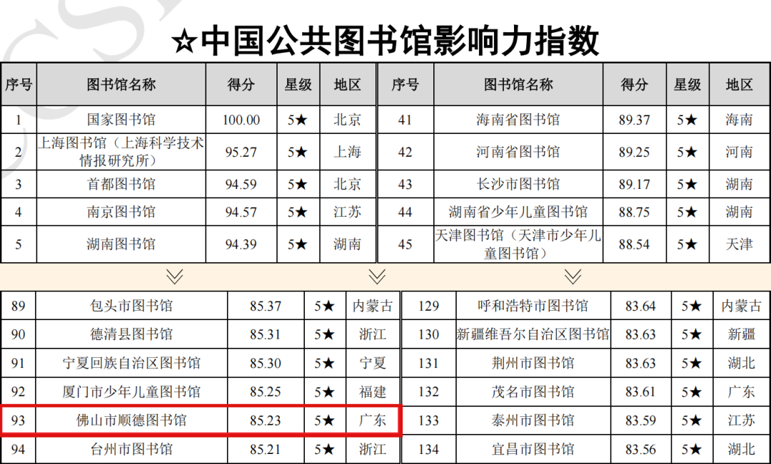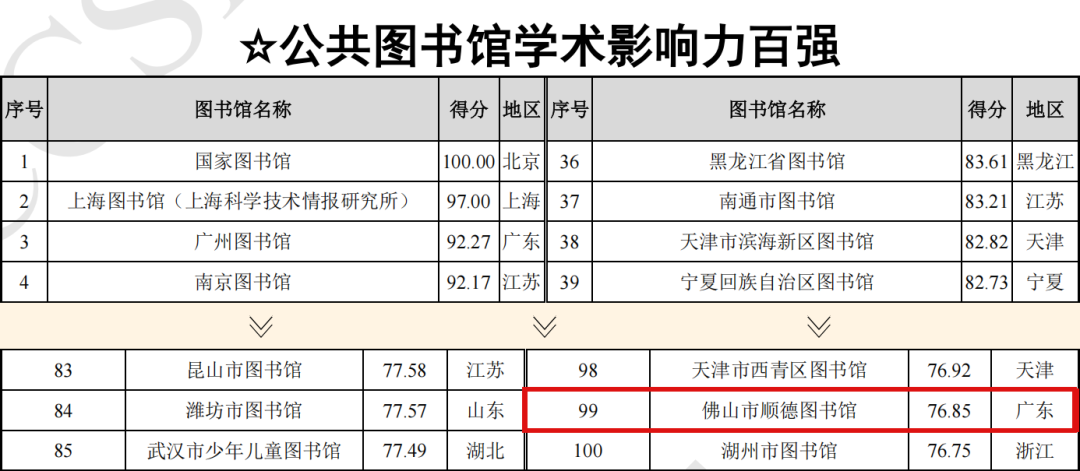顺德图书馆蝉联两届“公共图书馆学术影响力百强”