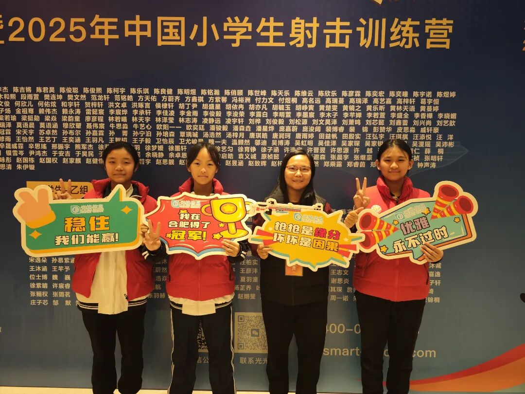 由龙江官田小学的射击小将参加的小学甲组捷报频传。个人赛中,张梓珊凭借稳定发挥拿下小学甲组女子10米光电手枪个人一等奖,李慧琳紧随其后斩获该项目个人三等奖;团体赛中,张梓珊、李慧琳、吴慧林三人默契配合,一举摘得该项目的团体第三名。