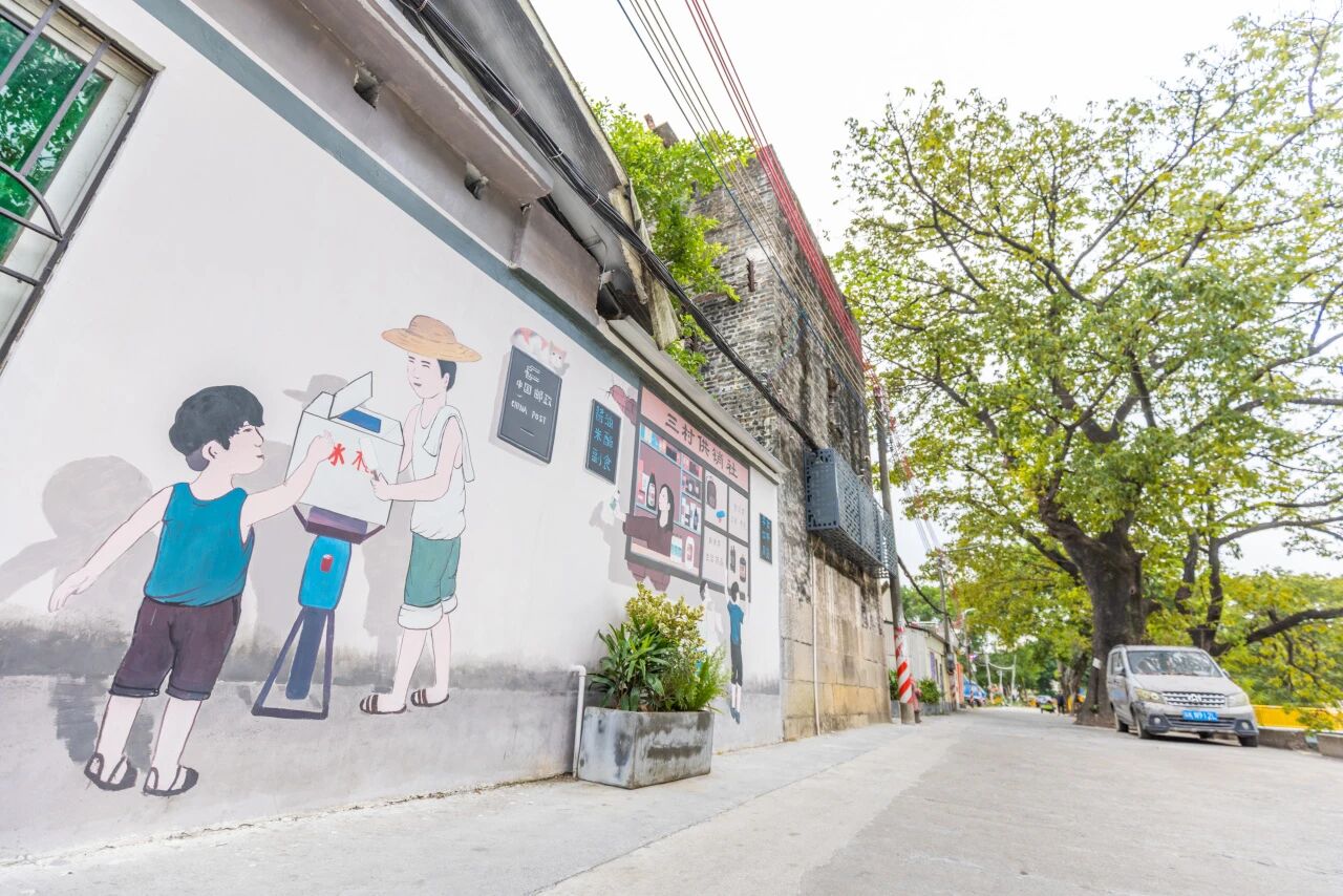炮楼出来,沿着河边缓缓前行,一旁是清澈舒适的流水,一旁是精心绘制的墙绘,色彩斑斓,内容丰富,从渔耕文化到现代生活,一幅幅生动的画面跃然墙上,让人在欣赏艺术的同时,也能感受到五沙社区独特的文化底蕴。