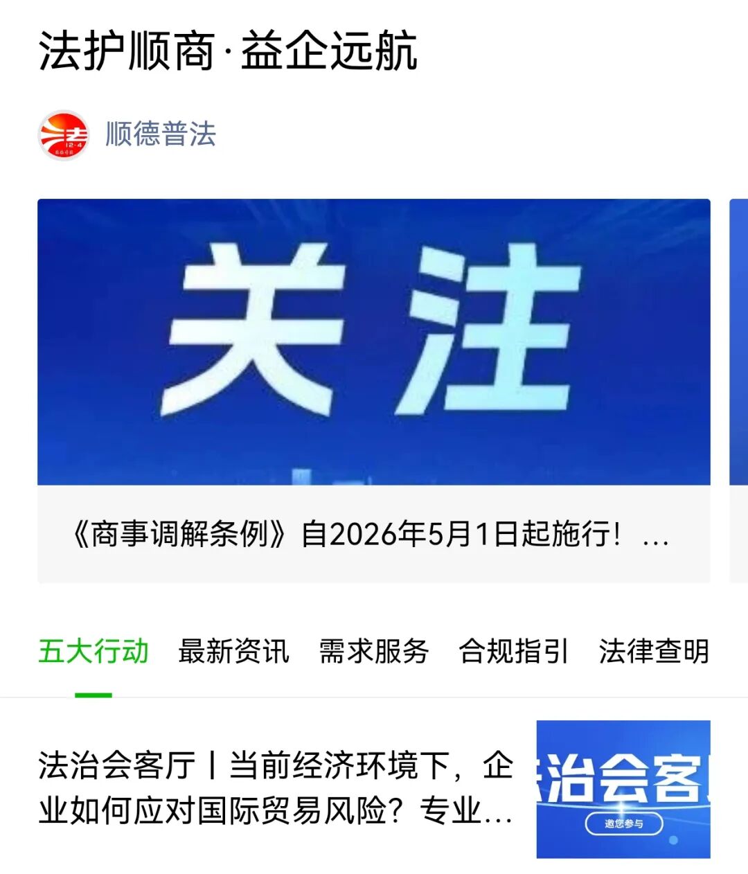 “顺德普法”公众号“法护顺商·益企远航”专栏