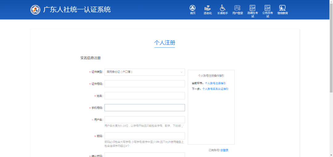 01. 广东公共求职招聘服务平台→右上角“登录”→个人注册→如实填写个人注册信息