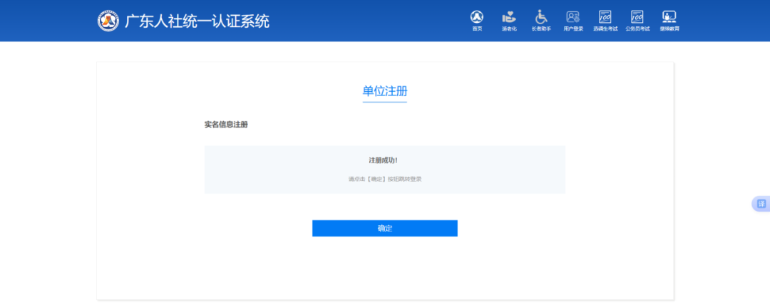 02.点击“注册”后出现二维码,手机扫描并进入小程序【粤信签】刷脸识别,识别成功后,看到网页端提示则注册成功。