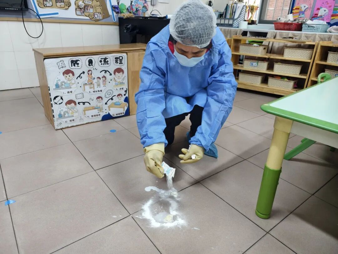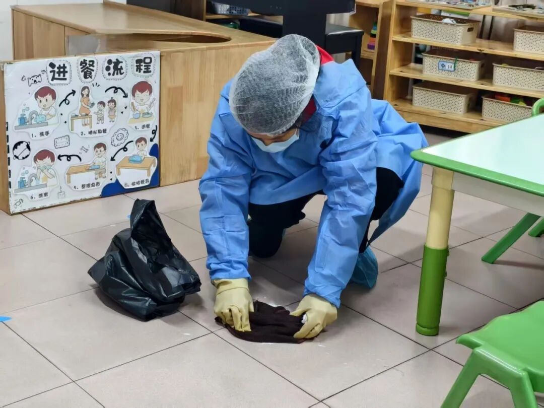 班主任第一时间与患病幼儿家长如实沟通情况,并组织其余幼儿安全转移至备用教室;全园教师密切观察在园幼儿身体状况,排查潜在发病人员;保育员做好个人防护后在保健医生的指导下,将地面上的呕吐物小心收集进留样袋中。对涉事班级、保健室等区域进行彻底消毒,封存相关餐具、容器及剩余食物以备检验。