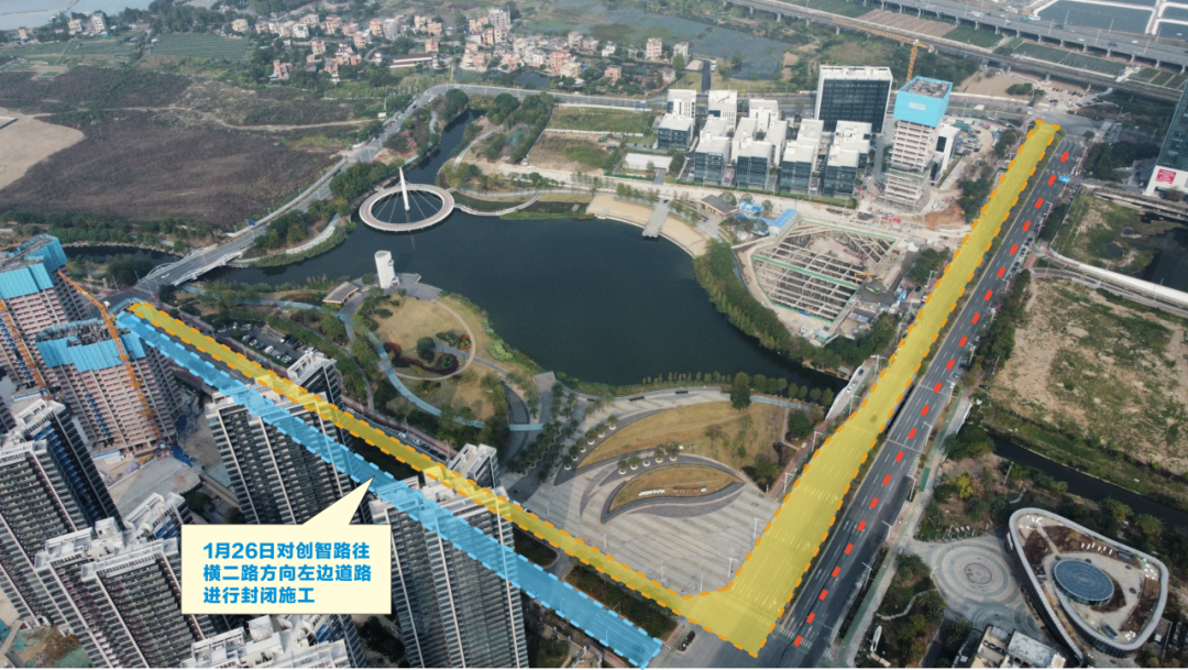 管制措施:对创智路往横三路方向左边道路进行全封闭施工。