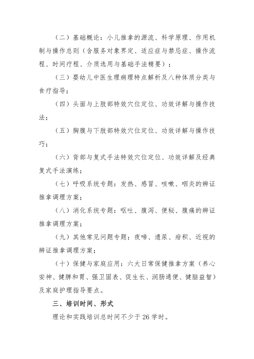 理论和实践培训总时间不少于26学时。