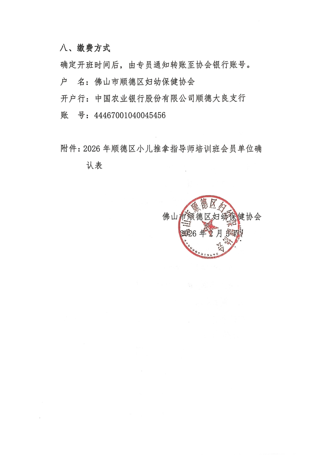 确定开班时间后,由专员通知转账至协会银行账号。