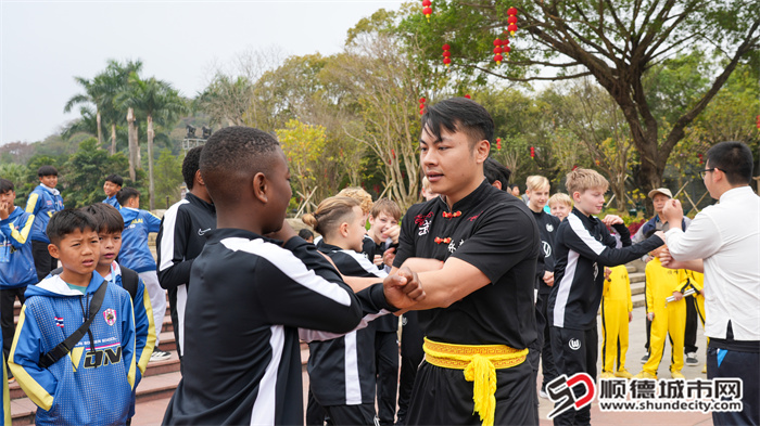 在顺德本土标志性的全民足球赛事——顺德“德甲”足球联赛将于2026年3月开赛之际,周大福乐信·FT CUP国际青少年精英赛同步在顺德举行。2月4日,来自德国、越南、泰国及中国香港、广东、上海、云南等地的超百名青少年球员,在参赛之余走进“小龙故里”均安镇,开启一场融合功夫文化与足球技艺的研学交流活动。