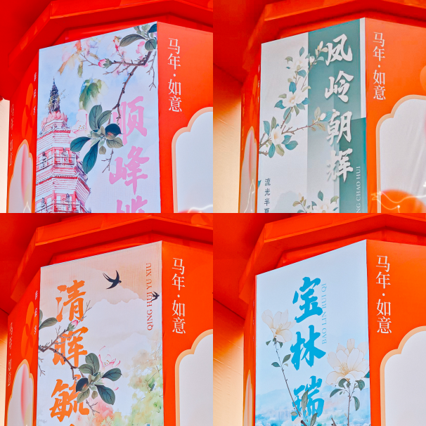花市C位打卡点非它莫属!南入口的巨型动态走马灯拱门,简直是把“凤城韵味+马年新意”焊在了门上!灯光流转间,春的繁花、夏的绿荫、秋的景致、冬的年味轮番闪现,骏马造型穿梭其中,妥妥的“流动的凤城四季画卷”,辞旧迎新的氛围感直接拉满!