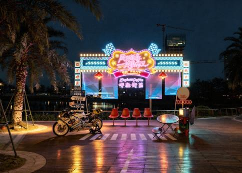 机车霓虹灯港风茶咖区:复古港风拉满的宝藏区域!老式机车搭配霓虹灯带,墙面装饰充满年代感,畔Riverside Café、卫士咖啡等特色摊位入驻,逛累了来一杯特调,随手拍都是港风大片。