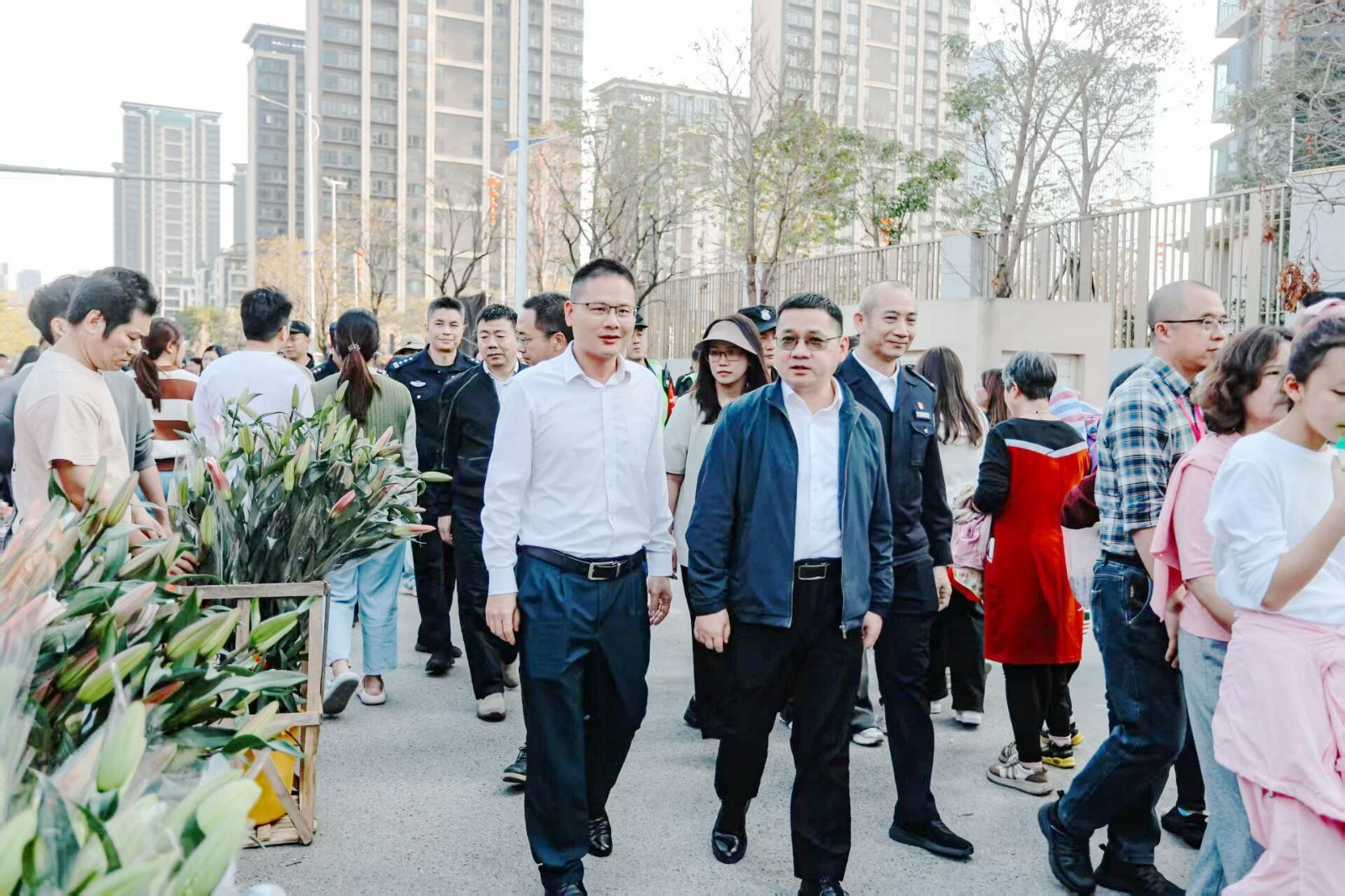 调研过程中,陈新文一行还专程走进花市的监控指挥中心,现场查看人流热力图和重点区域实时画面,详细了解客流疏导、应急通道设置、安保力量配备以及突发事件处置预案的落实情况。