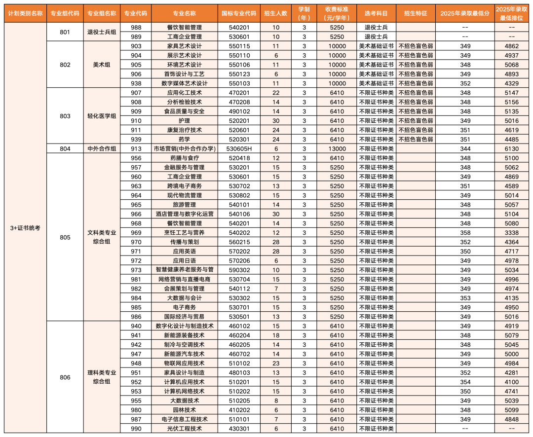 2026年“3+证书”专科批次招生计划