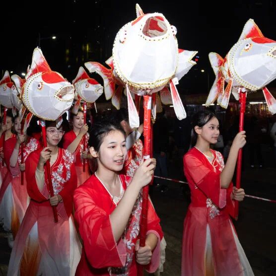 各大社区更是年味浓浓,南华社区的码头文化墟市、元宵游园会,集美食、民俗、文艺于一体;新桂社区、新滘社区的元宵活动,龙狮巡游、汤圆DIY、趣味游戏轮番上阵,更有"三新友好"骑手送福,让社区温情温暖新春;升平社区的赠春联活动,书法名家现场挥毫,个性化定制的春联让墨香里的年味更具温度。