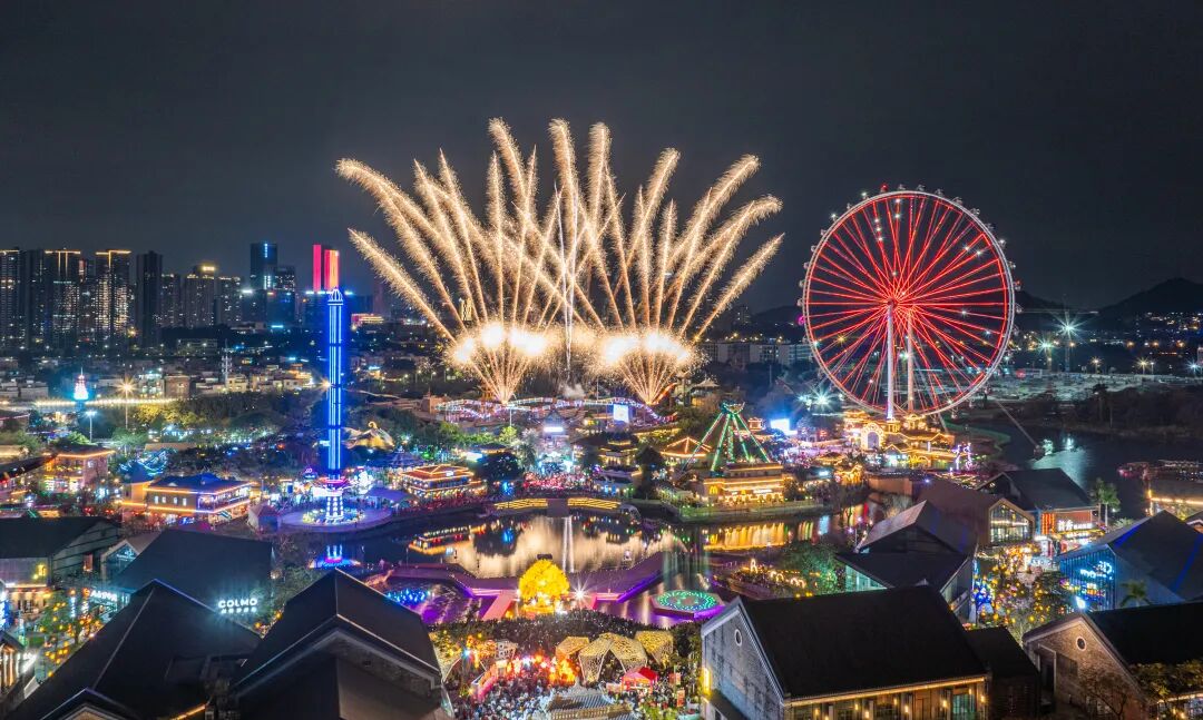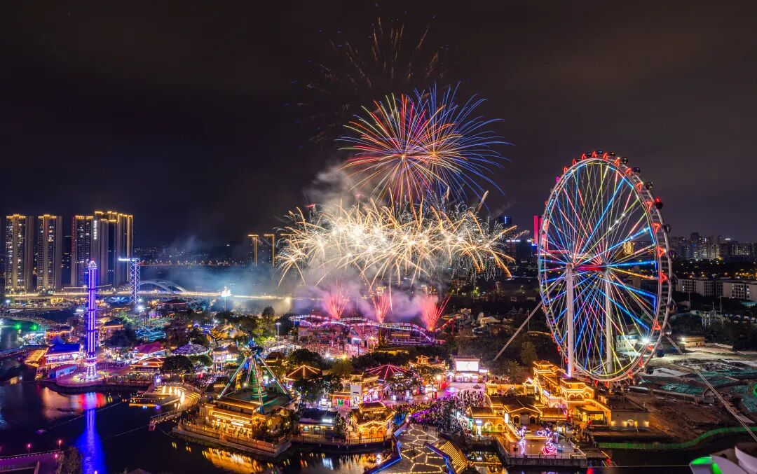 晚上8点30分,一声清脆的声响划破天际,五彩斑斓的烟火如天女散花般在夜空中绽放,各式各样的烟花腾空而起,绚烂无比。欢呼声、惊叹声此起彼伏,市民游客们纷纷举起手机,定格这美丽瞬间。