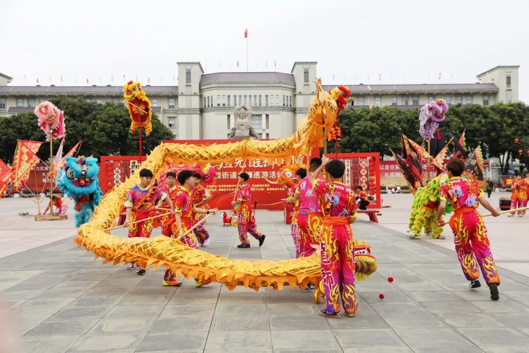 2月17日上午9时,勒流市民广场人声鼎沸。随着一声洪亮的号令,广场上瞬间鼓乐齐鸣。来自黄连醒狮协会的1条金龙与8头醒狮悉数登场。金龙在阳光下熠熠生辉,随着龙珠的指引翻腾起舞,时而“蟠龙出海”,时而“游龙戏珠”;八头醒狮则形态各异,有的摇头摆尾卖萌讨喜,有的登高采头青,引得围观市民阵阵欢呼。