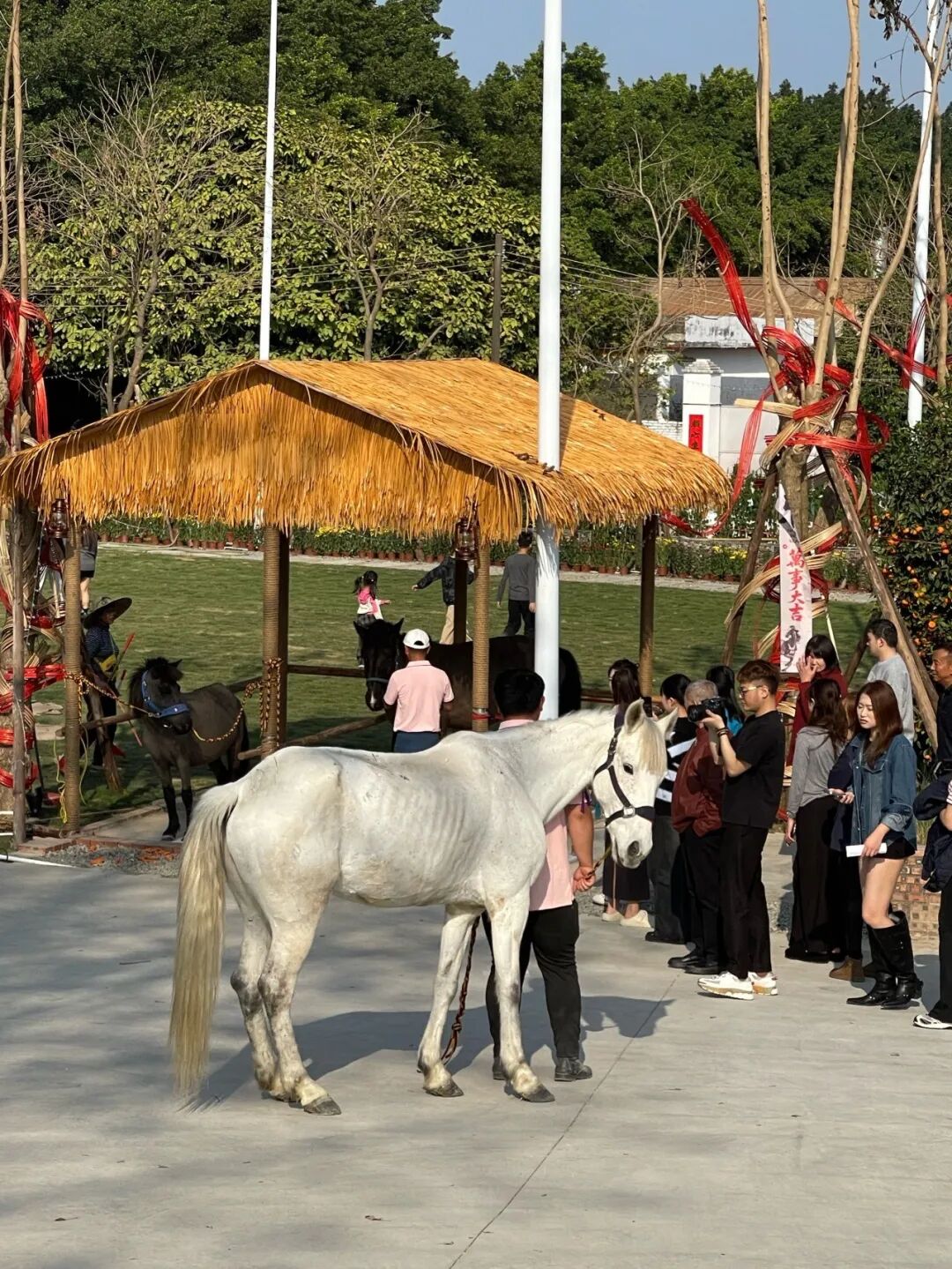 工作人员还会牵着不到一岁的白色小马“旺仔”来草地上和大家互动拍照,温柔又上镜,小朋友特别喜欢。